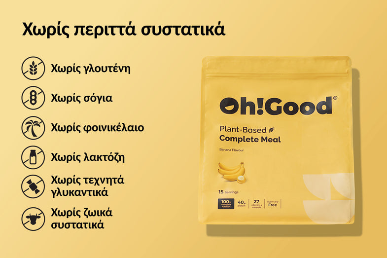 Το Oh!Good Complete Meal είναι ένα θρεπτικό ρόφημα πρωτεΐνης που ταιριάζει απόλυτα στην καθημερινή σας ρουτίνα - στο γραφείο, στο δρόμο, στο γυμναστήριο, στο βουνό, στο σπίτι.